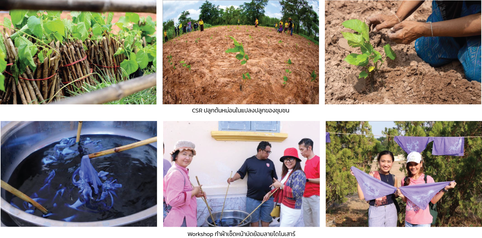 และที่แห่งนี้คณะนักเดินทางจะได้ร่วมทำ “กิจกรรม CSR ปลูกต้นหม่อนในแปลงปลูกของชุมชน” เพื่อพัฒนาเป็นแหล่งอาหารให้หนอนไหม พร้อมร่วมกิจกรรม Workshop ทำผ้าเช็ดหน้ามัดย้อมลายไดโนเสาร์ ด้วยฝีมือของตัวเองพร้อมนำกลับมาเป็นของที่ระลึก