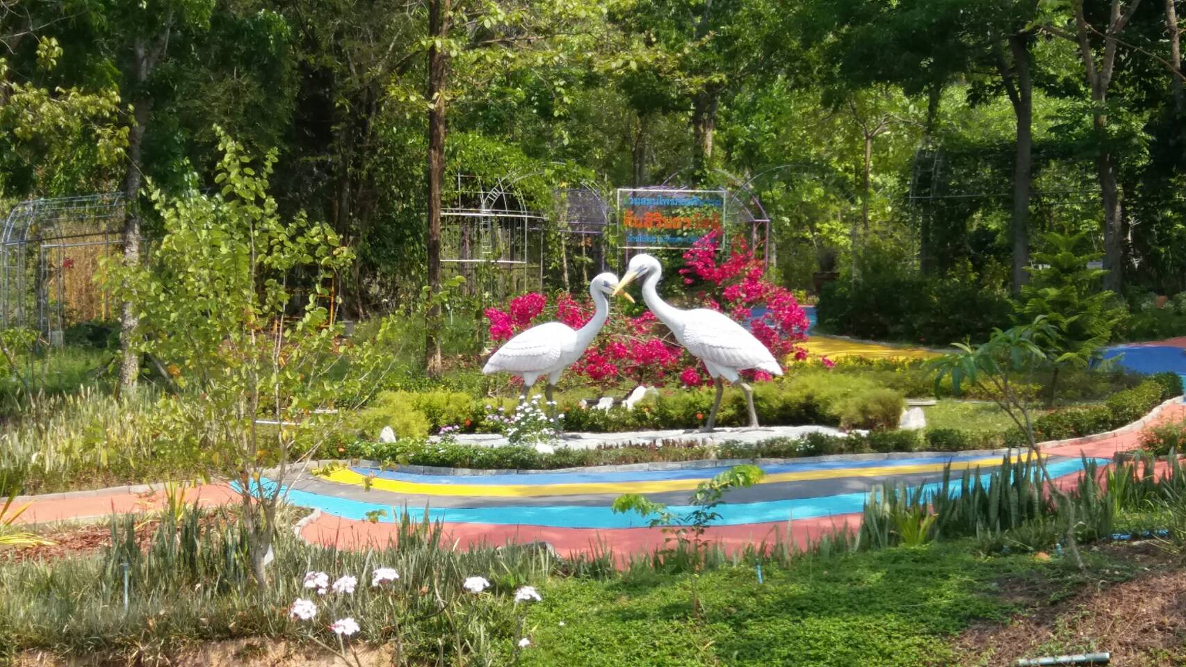 ทางเดินเข้าชมสวนสมุนไพร ทางเดินเท้าบนพื้นซีเมต์ทาเป็นสีๆๆตลอดทาง