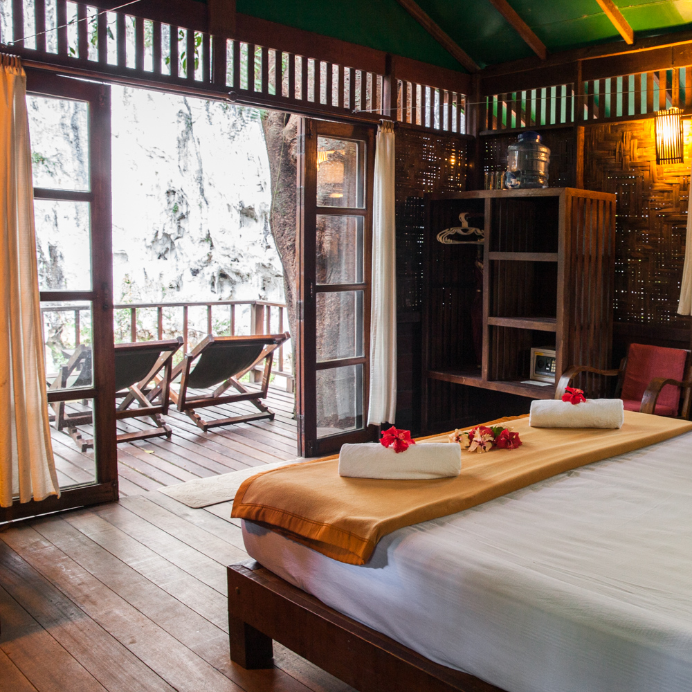 ดื่มด่ำกับจินตนาการของบ้านต้นไม้ ที่ตั้งอยู่เทียมยอดไม้สูงถึง 5 เมตร ทำให้สามารถมองเห็นทิวทัศน์มุมสูงของหน้าผาหินปูนที่โดดเด่น ในยามค่ำคืนตื่นตาไปกับท้องฟ้าที่เต็มไปด้วยดวงดาวจากดาดฟ้าของคุณ และนอนหลับไปกับเสียงที่ผ่อนคลายจากป่าหรือแม่น้ำไหลริน
