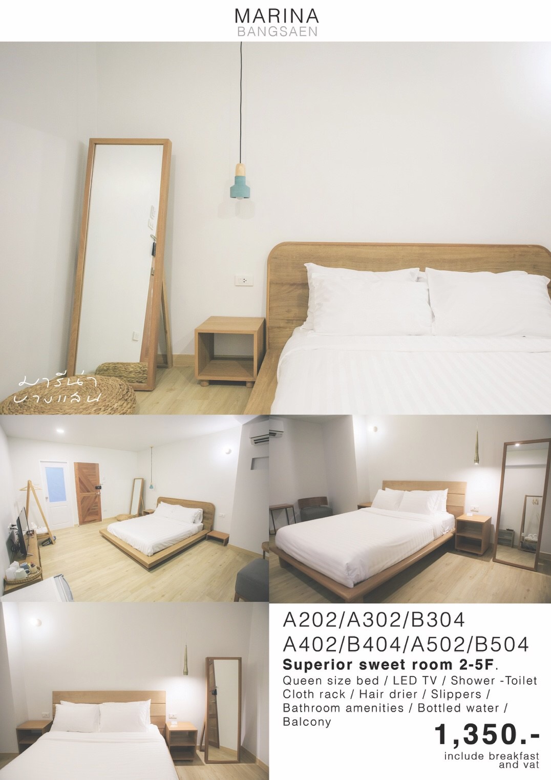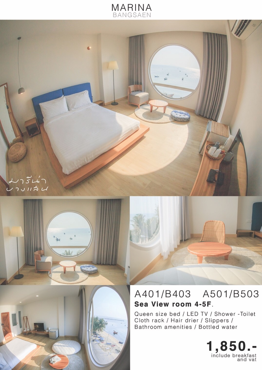 Marina Seaview Bangsaen เป็น ที่พักมินิมอลสไตล์ญี่ปุ่น พักผ่อนกันแบบชิล ๆ จุดชมวิวจากดาดฟ้าแบบ 180 องศา มุมถ่ายรูปสุดปัง ด้านล่างมีคาเฟ่ A Blank Coffee ให้นั่งดื่มด่ำบรรยากาศลมทะเลและวิวสวย ๆ จากหาดวอนนภา มีไอศครีมหน้าตาน่ารักให้เลือกได้ตามใจชอบและมุมถ่ายภาพน่ารักจากร้าน ISEA CREAM