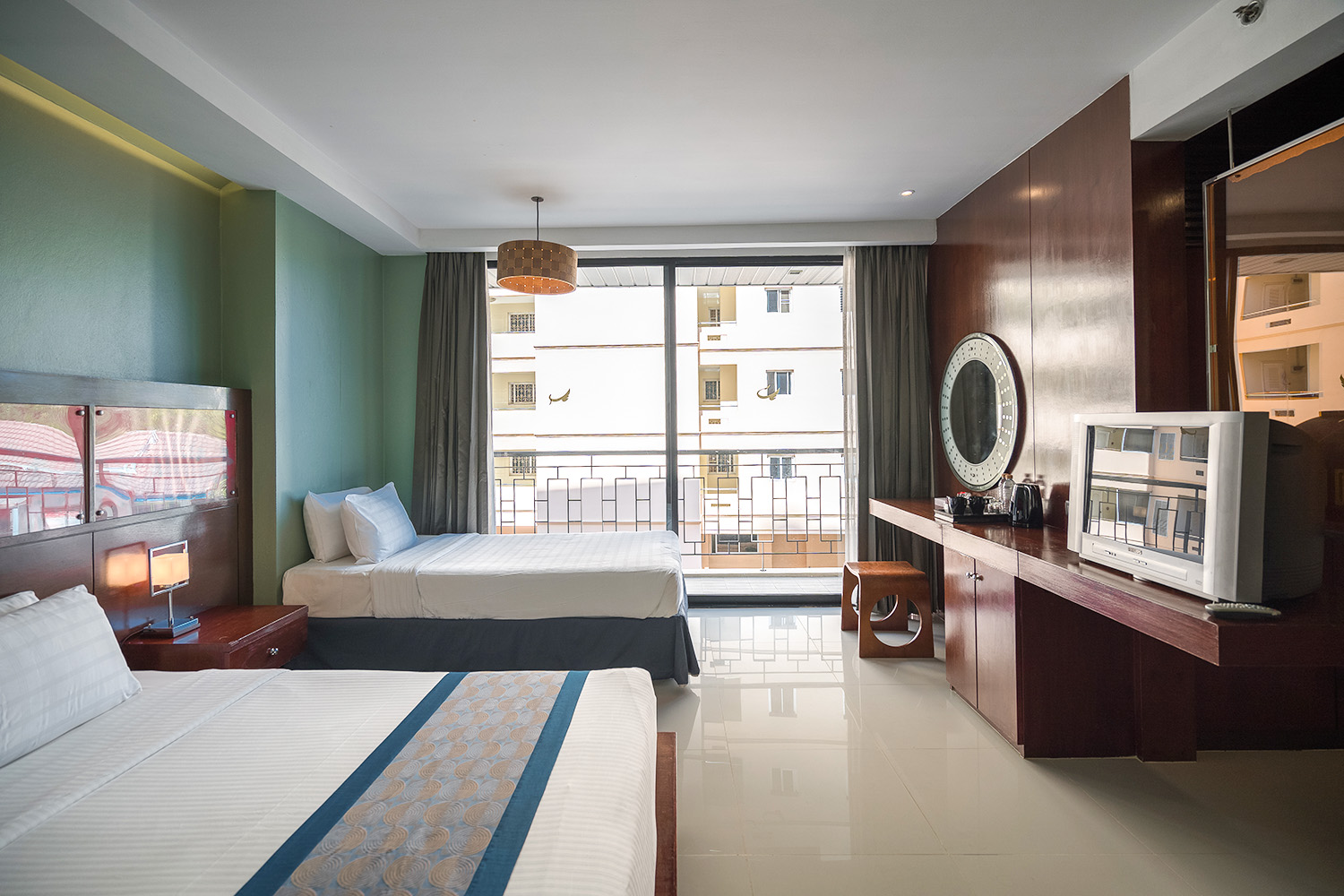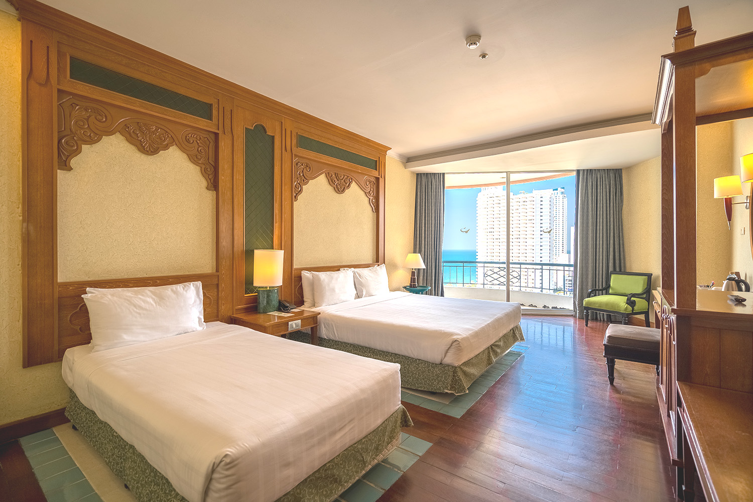 ที่ปีกอาคารหลัก 16 ชั้นให้บริการห้องพักและห้องสวีทในสไตล์ไทยบาหลีและโคโลเนียลในขณะเดียวกันโรงแรมยังมีปีกอีกแบบคือสไตล์บาหลีและโคโลเนียลในเวลาเดียวกันโรงแรมยังมีอีกปีกหนึ่งคือลองบีชพลัสซึ่ง มีห้องพักและห้องสวีทตามสไตล์บูติก