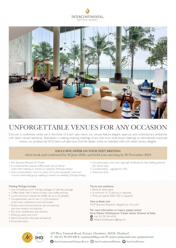 ยกระดับงานประชุม สัมมนา ของคุณไปอีกขั้นที่ อินเตอร์คอนติเนนตัล พัทยา รีสอร์ท