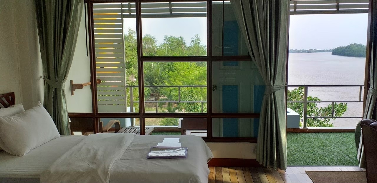 ที่พักฉะเชิงเทรา ที่พักริมน้ำบางปะกงที่สร้างบนเนื้อที่กว่า 6 ไร่ ซึ่งภายในพื้นที่บ้านนายถึกโฮมสเตย์ยังรายล้อมไปด้วยธรรมชาติที่อุดมสมบูรณ์ ด้านหน้าที่พักติดกับแม่น้ำบางปะกง ซึ่งสามารถมองเห็นช่วงโค้งน้ำได้อย่างสวยงาม และยังมีต้นไม้สูงใหญ่ให้ความร่มรื่นเป็นอย่างดี แถมยังอยู่ห่างจากตัวเมืองฉะเชิงเทราเพียง 10 นาที