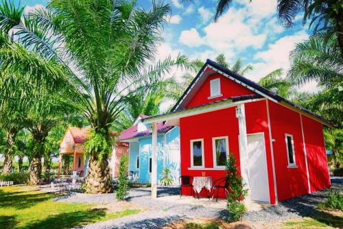 ห้องพักที่รีสอร์ทมีเครื่องปรับอากาศ และตู้เสื้อผ้า