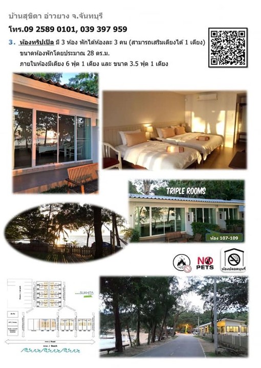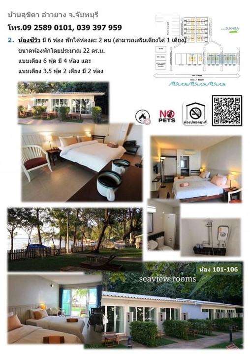 บ้านสุขิตา บริการห้องพักในอ่าวเล็กๆ เงียบสงบ ตั้งอยู่หน้าหาดอ่าวยาง อ.แหลมสิงห์ จ.จันทบุรี