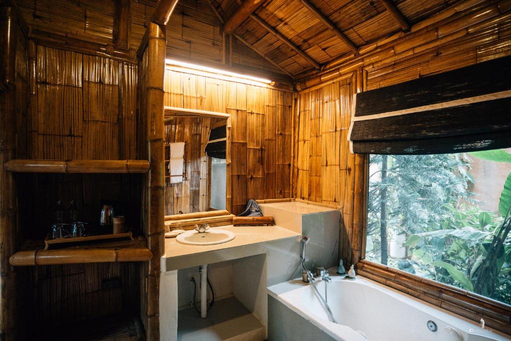 หม่อมดา ได้รวมเอาไม้ไผ่เป็นวัสดุก่อสร้างหลัก เพื่อใช้เป็นทรัพยากรหมุนเวียนของท้องที่ การออกแบบที่โดดเด่นของ หม่อมดา รีสอร์ตสไตล์ชนบทอันเขียวชอุ่ม ได้รับการดูแลอย่างใส่ใจ ภูใจใสเป็นสถานที่ที่อุทิศให้กับมารดาอันเป็นที่รักยิ่ง นางใจใส จักรพันธุ์