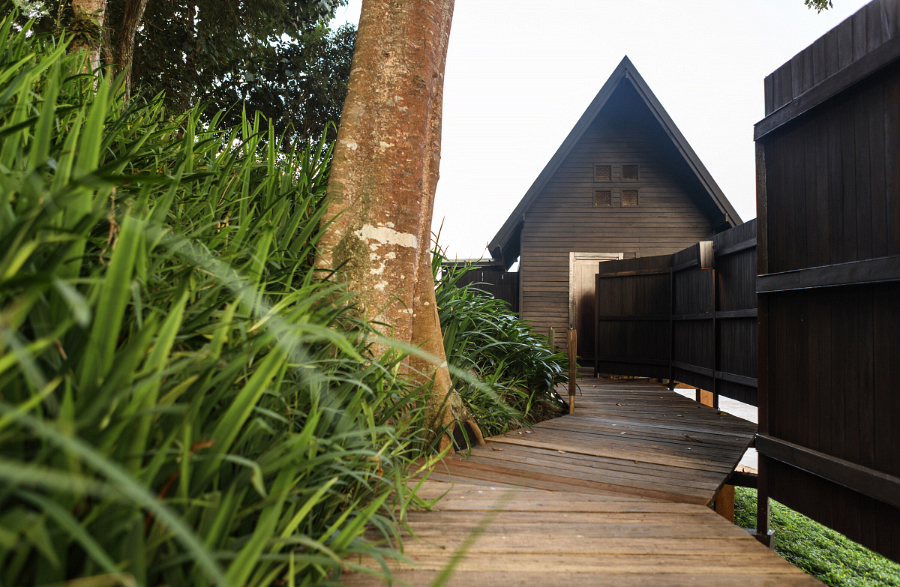 บ้านพักทุกหลังซ่อนตัวในแนวไม้และป่าไผ่ กลมกลืนกับพฤกษ์ไพร ตำแหน่งที่ตั้งของบ้านได้รับ การพิจารณาเลือกสรร ให้ผู้มาพักผ่อนได้สัมผัสความงดงามของทิวทัศน์ได้เต็มตา
