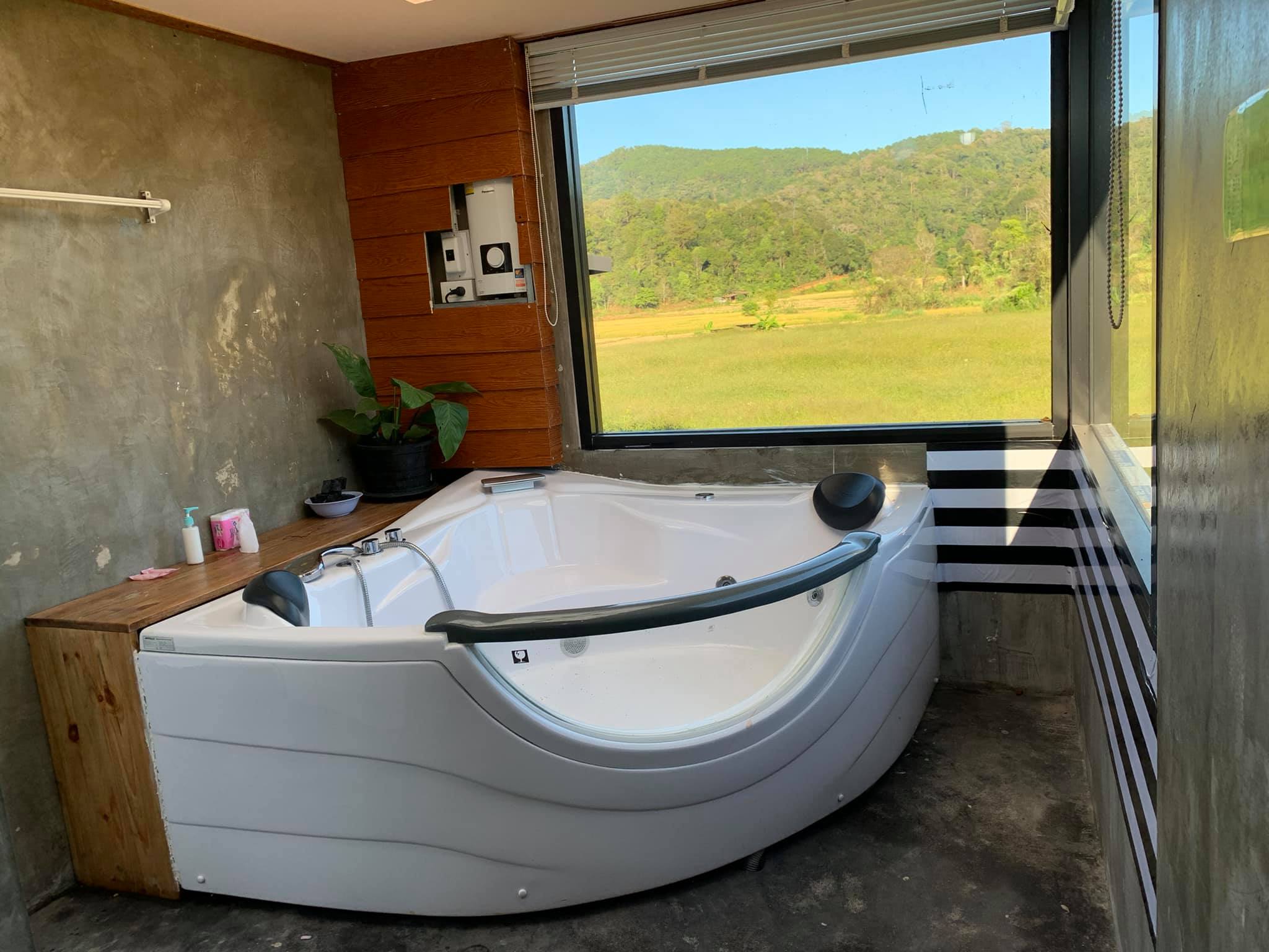 (มีเพียง1ห้องเท่านั้น) เตียง 6 ฟุต และห้องน้ำแบบอ่างอาบน้ำสามารถชมบรรยากาศด้านนอกได้