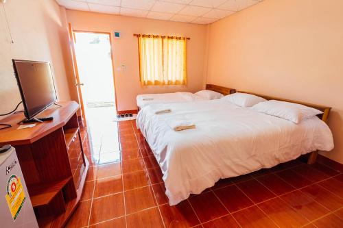 ห้องพักในเกสต์เฮาส์มีโทรทัศน์จอแบน ทุกห้องที่ Honey Land มีห้องน้ำส่วนตัว