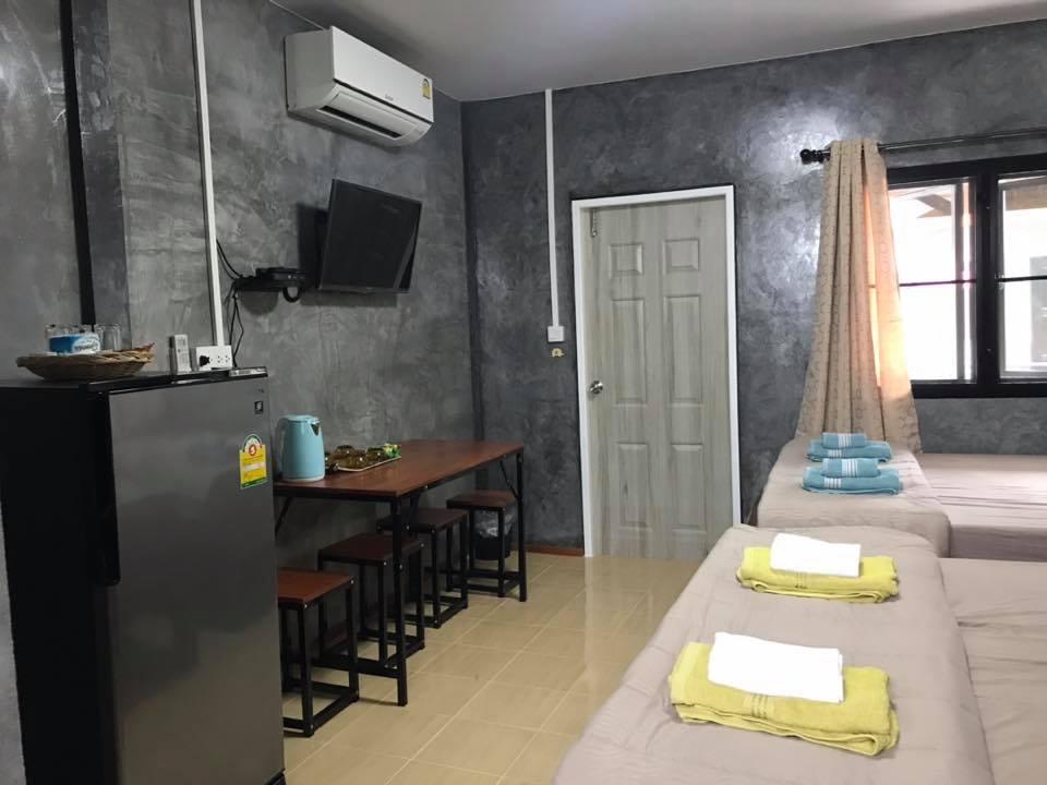 ห้องพักเป็นห้องปรับอากาศ พร้อมอินเทอร์เน็ตไร้สาย (WiFi) ฟรี มีทีวี และตู้เย็น