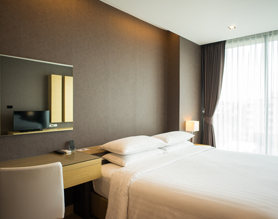 โรงแรมถูกสร้างขึ้นในสไตล์โมเดิร์น มีความเรียบหรูพื้นที่ใข้สอยกว้างขวางสงบมีความเป็นส่วนตัว โรงแรมของเราประกอบด้วยห้องพักทั้งหมด 4 ประเภท แบ่งเป็นห้องจูเนียร์ สวีท เตียงเดี่ยว จำนวน 20 ห้อง, ห้องจูเนียร์ สวีท เตียงคู่ จำนวน 16 ห้อง, ห้องเอ็กเซ็คคูทีฟ สวีท เตียงเดี่ยว จำนวน 5 ห้อง และห้องสะเหน่ ซิกเนเจอร์ สวีท เตียงเดี่ยว จำนวน 1 ห้อง ทุกห้องพักถูกตกแต่งในสไตล์โมเดิร์นและทันสมัย ให้ความรู้สึกเหมือนอยู่บ้านของท่านเอง