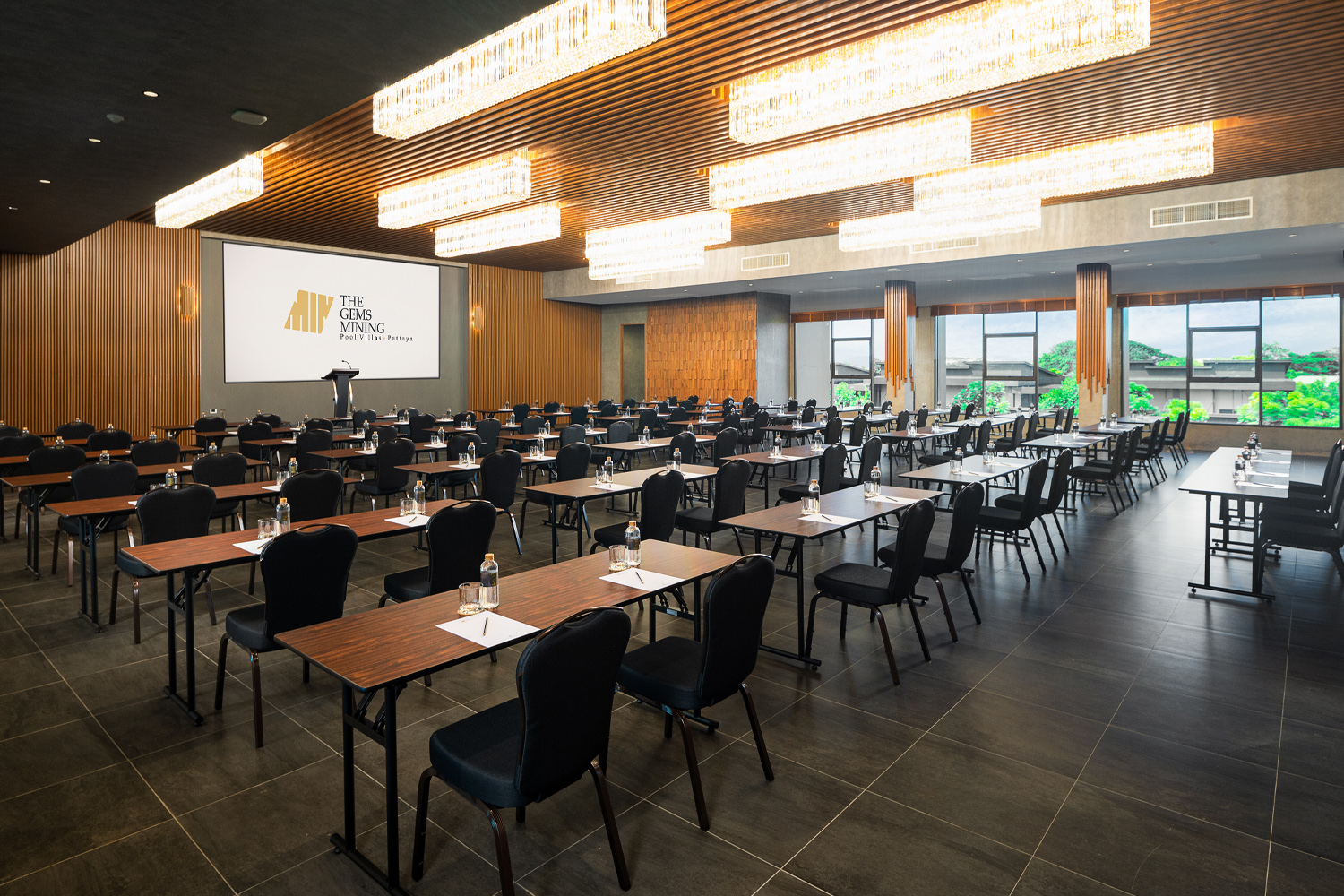 The Gems Mining Pool Villas Pattaya เดอะเจมส์ ไมนิ่ง พูลวิลล่า พัทยา รีสอร์ตขนาด 77 ห้อง เชิญคุณสัมผัสประสบการณ์การพักผ่อนสุดหรูหรา ที่เรียบง่าย พร้อมสิ่งอำนวยความสะดวกระดับห้าดาว ท่ามกลางบรรยากาศเขียวขจีแวดล้อมไปด้วยแมกไม้นานาพันธุ์ ได้รับแรงบันดาลใจในการออกแบบทั้งภายในและภายนอกจากเหมืองแร่อัญมณีในแอฟริกา รีสอร์ตมีสิ่งอำนวยความสะดวกสำหรับจัดงานประชุมและกิจกรรมต่าง ๆ ทั้งสำหรับองค์กรและการพักผ่อนส่วนตัว โดยมีห้องประชุมเดอะไมเนอร์ (The Miner) ซึ่งสามารถรองรับแขกที่มาร่วมงานได้ถึง 200 ท่าน และห้องประชุมดิเอ็กซ์พลอเรอร์ (The Explorer) ซึ่งสามารถรองรับแขกได้ประมาณ 60 ท่าน