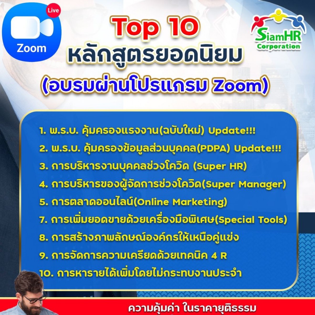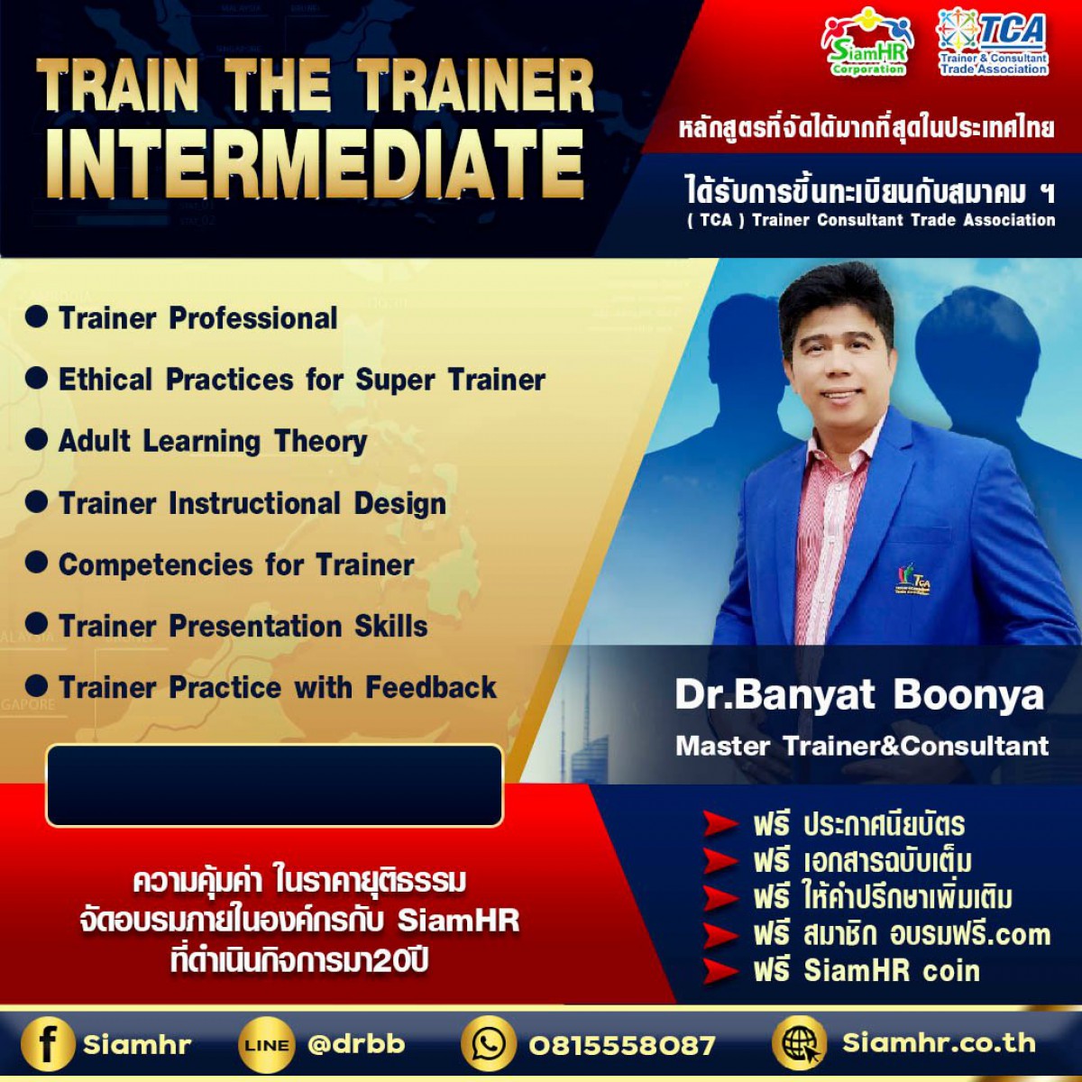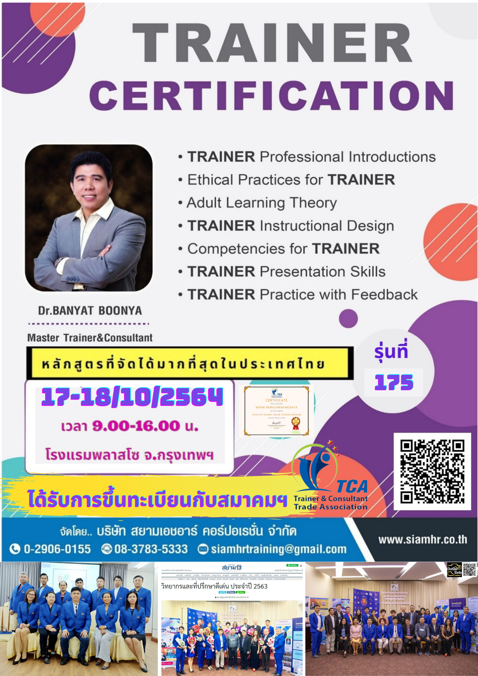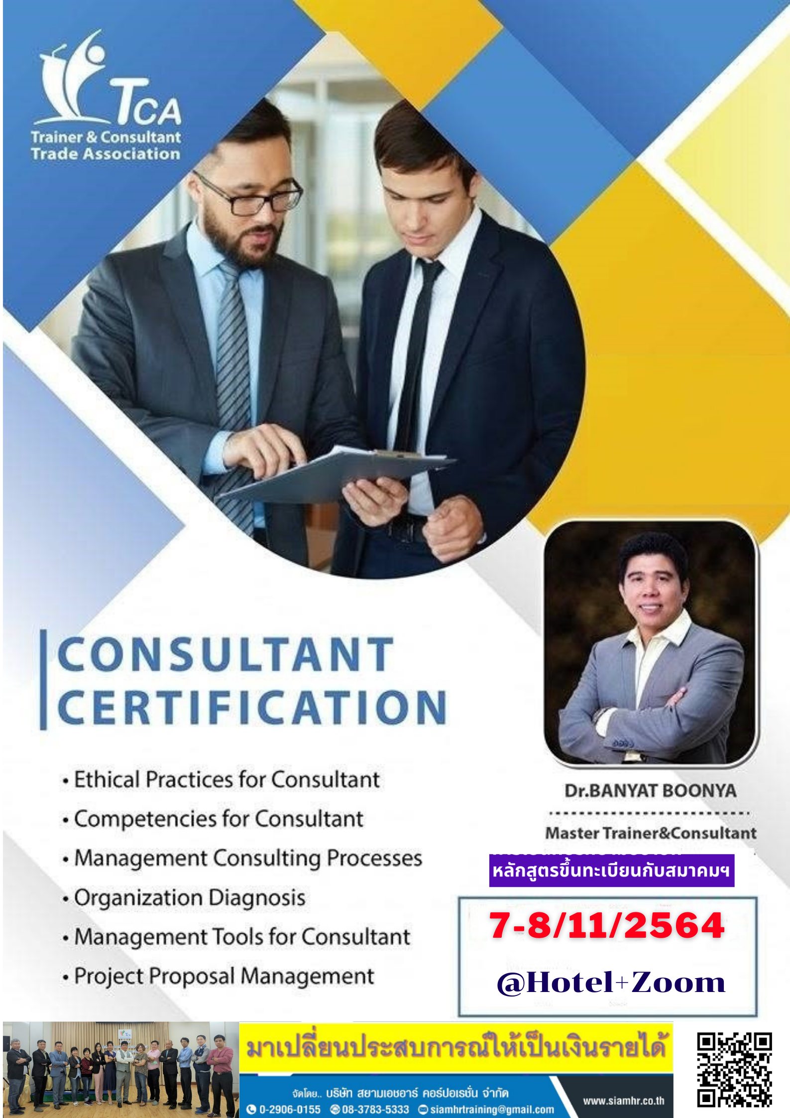 จัดมาแล้วกว่า 200 รุ่น หากสอบผ่านจะได้รับการขึ้นทะเบียนกับสมาคมวิทยากรและที่ปรึกษา(สมาคมยอดเยี่ยม) อ่านต่อ