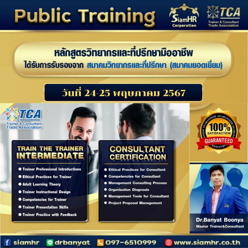 หลักสูตร วิทยากรและที่ปรึกษา Trainer& Consultant Certification รุ่นที่ 201... อ่านต่อ