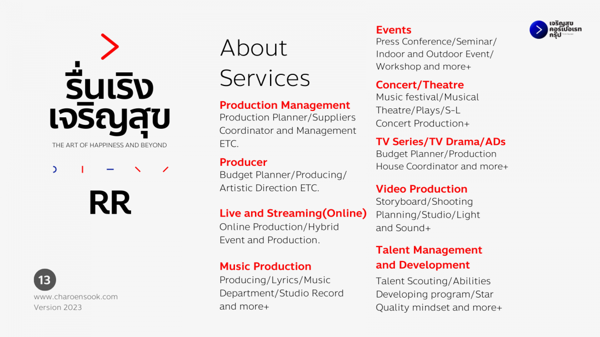 Charoensook Corporate Group Company Limited (CCG) was established on June 29, 2020, by Mr. Jesada Danparn (Founder and Group CEO), who has more than 16 years of experience in the entertainment industry and show business in Thailand.