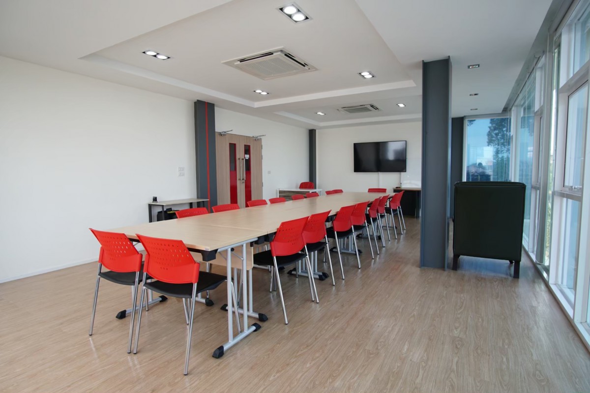 ห้องประชุมที่มีพร้อมทุกอย่าง สะอาด บรรยากาศปลอดโปร่ง สามารถรองรับได้ถึง 40 ท่าน สามารถกั้นห้องโดยแบ่งเป็นสองห้องได้หรือจะเป็นห้องใหญ่ก็ได้ มีปลั๊กไฟเพียงพอ พร้อมอุปกรณ์เครื่องเสียง ลำโพงและไมค์โครโฟน ทีวีขนาดกว้างพอสำหรับการมองเห็นทั้งห้องประชุม มีไวท์บอร์ดสำหรับเขียนแผนการประชุม มีอาหาร-มีเครื่องดื่ม จัดมีเบรก ตามงบประมาณของลูกค้า บริการช่างภาพนิ่งและVDO พร้อมตัดต่อ