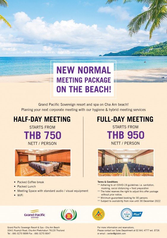 ราคาประชุมเต็มวันเริ่มต้น 950บาท ต่อท่าน ราคาห้องพักวิวทะเล เริ่มต้นที่ 2,000.-... อ่านต่อ