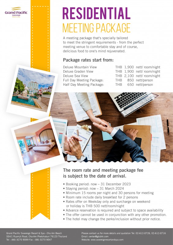 Residential Meeting Package Exclusively for Government or Corporate meeting... อ่านต่อ