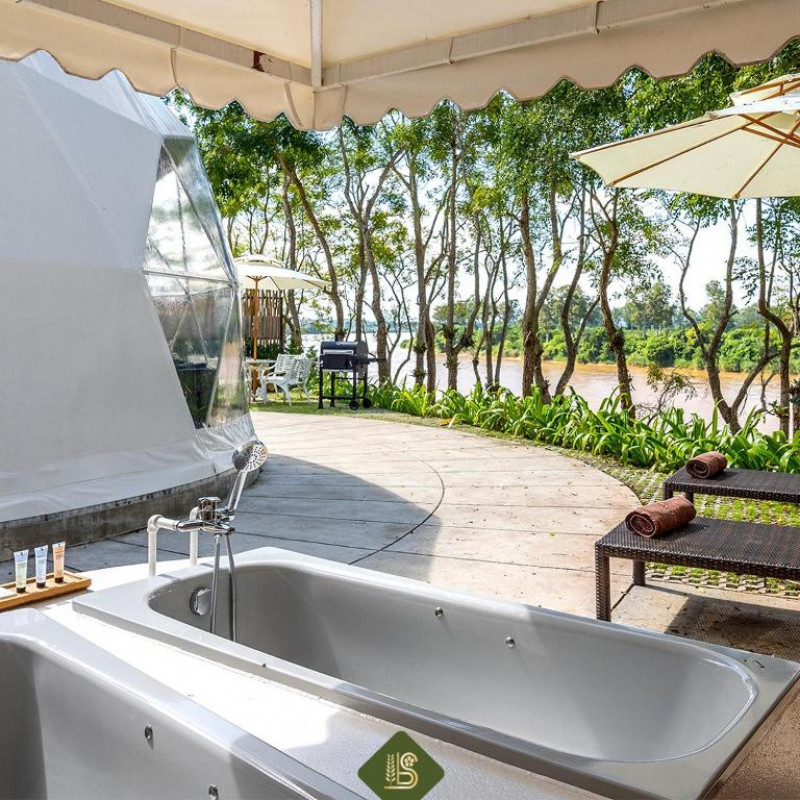 บ้านแซว การ์เด้น แอนด์ รีสอร์ท ริมฝั่งแม่น้ำโขงพร้อมสวนดอกไม้ ริมสระน้ำ ร้านอาหารเปิดตลอดทั้งวัน