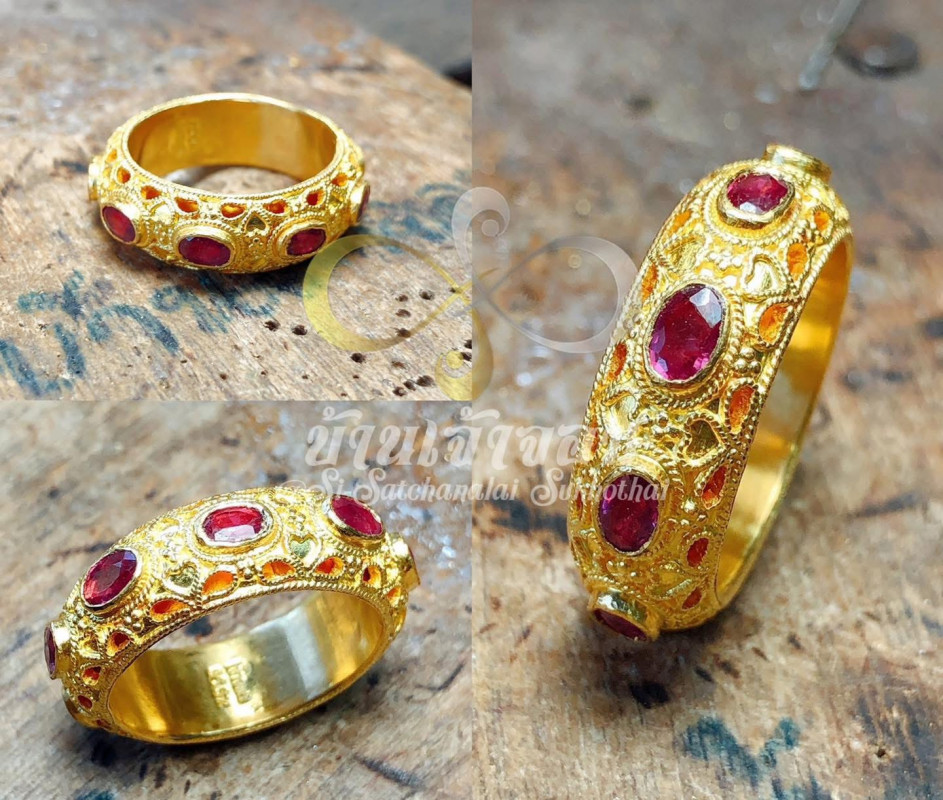งานทองโบราณสุโขทัย ถือกำเนิดขึ้นในช่วงสมัยรัตนโกสินทร์ แต่คนมักจะเข้าใจกันว่าเป็นทองโบราณในสมัยสุโขทัย ซึ่งจริงๆแล้วทองสุโขทัยเป็นชื่อเรียกที่มาจากแหล่งกำเนิดคือที่ อ.ศรีสัชนาลัย จ.สุโขทัยนั่นเองค่ะ