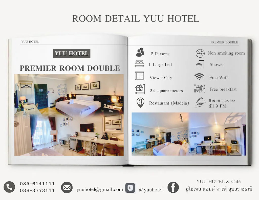 โรงแรมสุดชิค สไตล์เฟรนซ์โคโรเนียล ใจกลางเมืองอุบลฯ ให้บริการห้องพัก เปิดตลอด 24 ชม. ฟรีอาหารเช้า มีคาเฟ่ในตัวโรงแรม ลานจอดรถกว้าง มีจักรยานให้ยืมฟรีสำหรับลูกค้าโรงแรม ใกล้สวนสาธารณะทุ่งศรีเมือง ศูนย์การค้า ร้านอาหาร ร้านนั่งชิว มีสิ่งอำนวยความสะดวกครบ