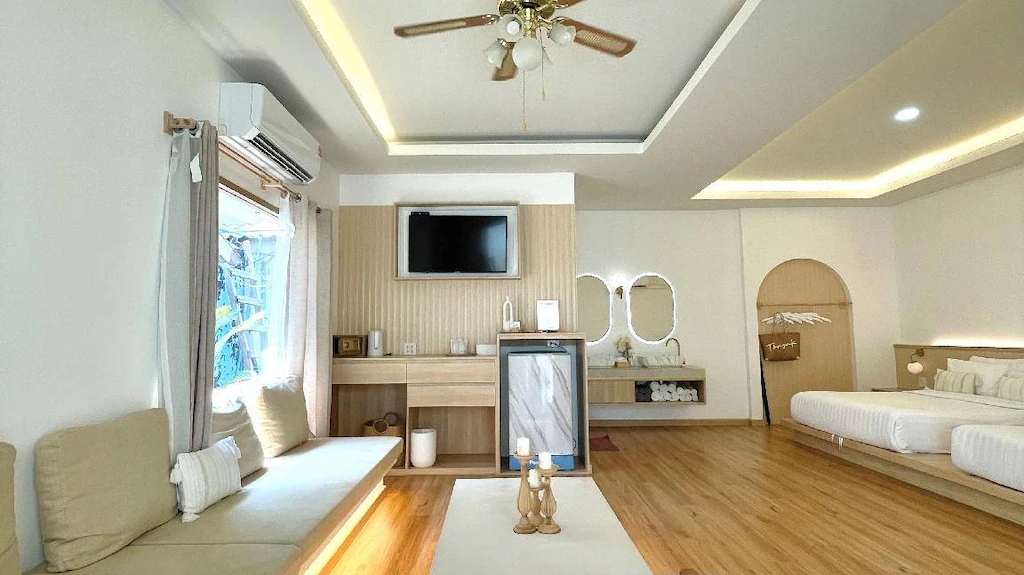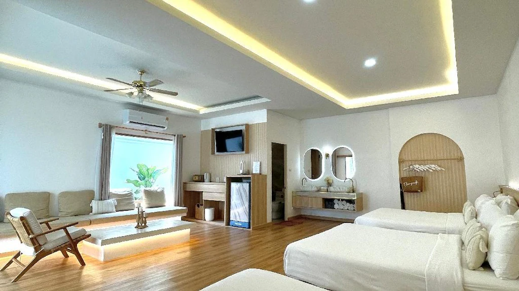 Tonsak Resort (ต้นสัก รีสอร์ท) ตั้งอยู่ริมหาดทรายแก้ว ตัวรีสอร์ทอยู่ติดริมทะเล บริเวณรอบๆทางทที่พักมีความร่มรื่นสบายๆ มีต้นไม้ล้อมรอบ และลมพัดเย็นสบายตลอดทั้งวัน ห้องพักของที่นี่จะเน้นการตกแต่งเป็นแบบมินิมอล ภายในห้องมีสิ่งอำนวยความสะดวกที่ครบครัน ทั้งกาน้ำร้อน ตู้เย็น ทีวี แอร์ กระจกบานใหญ่ ด้านในห้องน้ำ เป็นลายหินอ่อน ดูเรียบหรู สบายตา และสะอาดมาก แยกโซนออกชัดเจนค่ะ ทั้งสุขา และห้องอาบน้ำ เป็นอีกหนึ่งห้องที่ด้านในเรียบหรู ที่พักเรามีทั้งร้านอาหาร คาเฟ่ และบาร์ โชว์ไฟควง มีห้องพักหลายแบบจำนวน 25 ห้อ