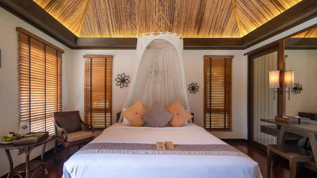 เลอ วิมาน คอตเทจ แอนด์ สปา มีจำนวนห้องพัก 31 ห้อง ภายในห้องพักเป็นหลังคาสูงโปร่งมุงได้ไม้ไผ่และหญ้าคา ห้องนอนกว้างขวาง มีสิ่งอำนวยความสะดวกครบครัน และที่สำคัญห้องพักส่วนใหญ่จะมองเห็นวิวทะเล สามารถชมวิวพระอาทิตย์ตกที่สวยที่สุดในเกาะได้จากที่นี่ ส่วนใครอยากเล่นน้ำก็เดินลงหาดได้เลยมี และห้องอาหาร 2 ห้องขนาดใหญ่ สำหรับบริการจัดเลี้ยง ร้านอาหารภายในที่พักใช้วัตถุดิบชั้นเลิศที่คัดสรรมาอย่างดี สำหรับกิจกรรม เราก็มีไว้สำหรับผู้เข้าพักเช่นกัน อาทิ ดำน้ำตื้นดูปะการัง Spa พายเรือคายัค สระว่ายน้ำขนาดใหญ่