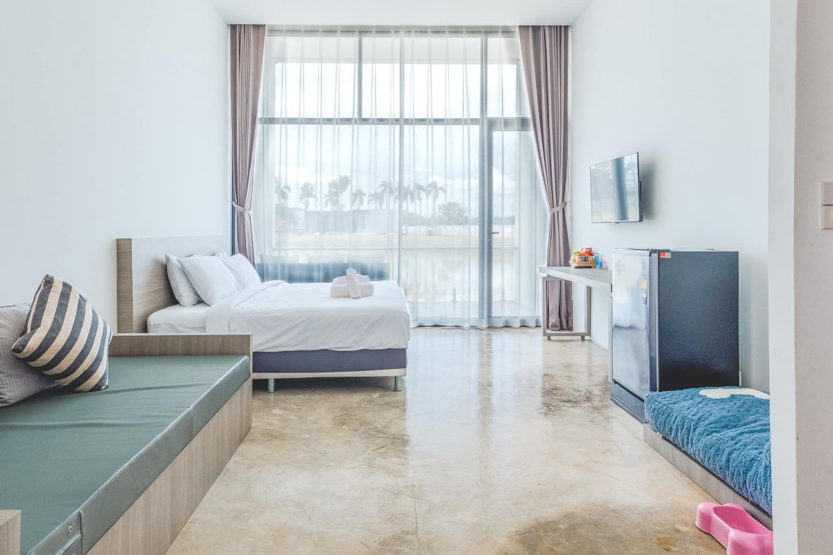 Miss you a lot Resort รีสอร์ทสำหรับคนรักสุนัข อ.สัตหีบ จ.ชลบุรี ห้องพักติดน้ำ บรรยากาศดีๆ สนามหญ้าส่วนตัว มีรั้วปิดมิดชิดในพื้นที่ส่วนตัว ปล่อยน้องเอ็นจอยได้เต็มที่มีทางลาด สำหรับผู้ที่ใช้วีลแชร์ด้วยค่ะยินดีต้อนรับน้องหมา ไม่จำกัดน้ำหนัก ที่นี่มีห้องพักทั้งหมด 10 ห้อง