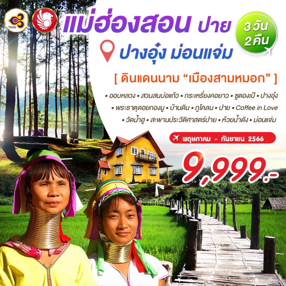 3 วัน 2 คืน ปาย ปางอุ๋ง ม่อนแจ่ม ดินแดนนาม เมืองสามหมอก ออบหลวง สวนสนบ่อแก้ว กระเหรี่ยงคอยาว... อ่านต่อ