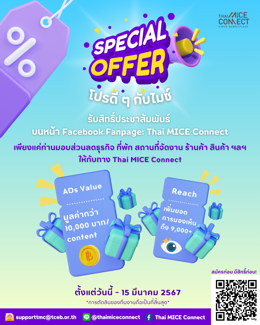 โปรดี ๆ กับไมซ์ รับสิทธิ์ประชาสัมพันธ์ทันที บนหน้า Facebook Fanpage: Thai MICE Connect