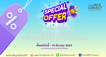 - ผู้ประกอบการที่เป็นสมาชิก Thai MICE Connect ของสสปน. สามารถร่วมสนุกกับแคมเปญ “ยกทีมประชุม รุมรักเมืองไทย” โดยการนำเสนอโปรโมชันสินค้าและบริการ ผ่านแพลตฟอร์ม Thai MICE Connect สำหรับบริษัท/ หน่วยงาน/ องค์กร ที่เข้าร่วมแคมเปญ “ยกทีมประชุม รุมรักเมืองไทย”