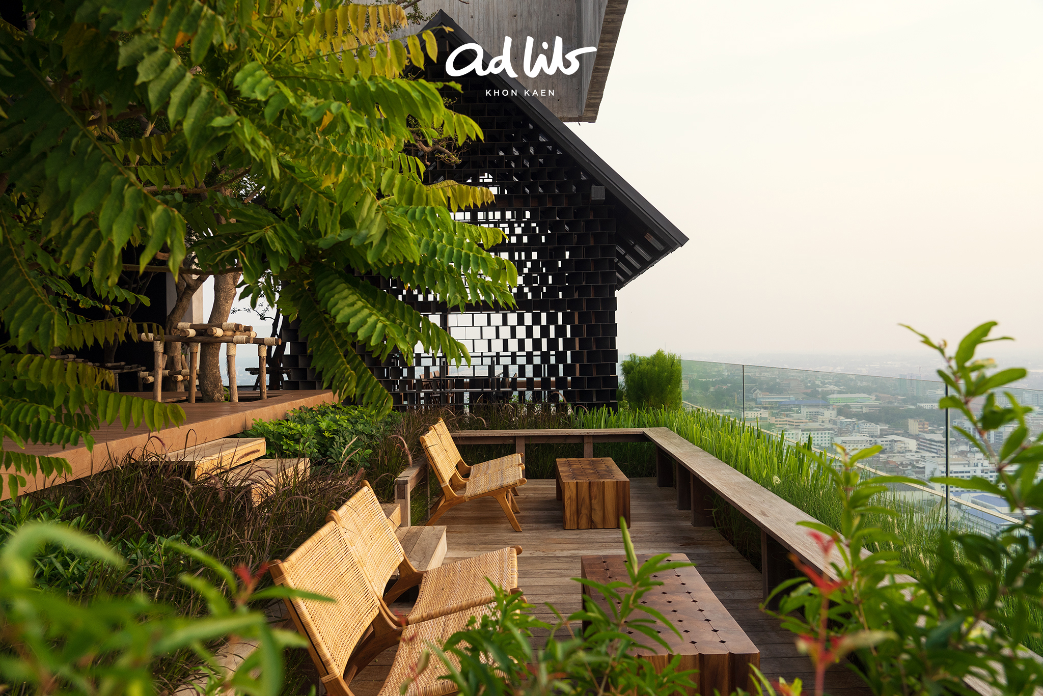 Ad Lib Hotel Khon Kaen พยายามนำความเป็นขอนแก่นและอีสานมาอยู่ในโรงแรมกลางตึกสูง ทั้งการใช้วัสดุท้องถิ่นอย่างผ้าและงานจักสานมาตกแต่งห้องพักและทางเดิน เตียงที่วางอยู่บนแท่นให้เราได้นั่งห้อยขาเหมือนชานบ้าน และอีกหลายลูกเล่นที่ชวนให้แขกค้นหา รายละเอียดทุกอย่างมีความเป็นท้องถิ่น ใช้ผ้าของคนขอนแก่น งานศิลปะของศิลปินขอนแก่น พยายามให้ค่ากับความเป็นขอนแก่น โดยมีไฮไลต์คือจุดชมวิวบนชั้น 28