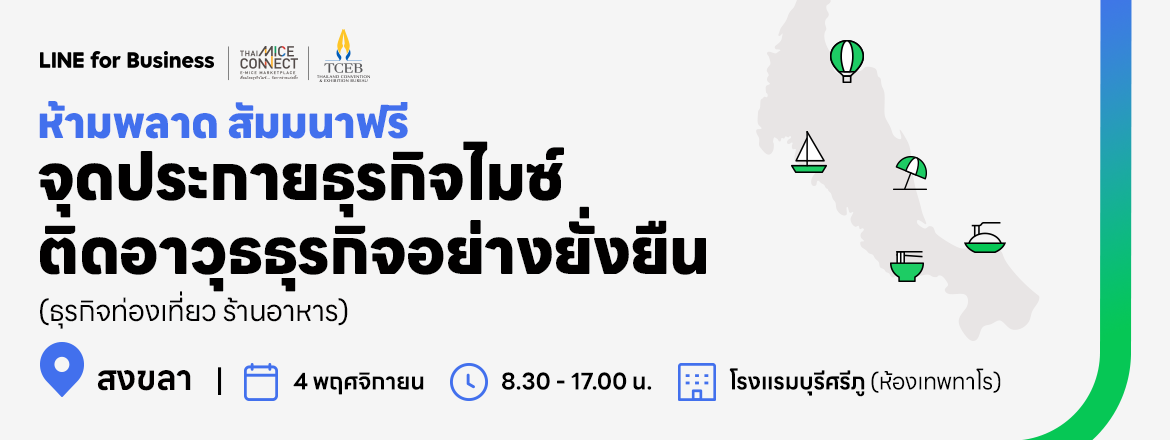 #MICEสงขลา #MICEภาคใต้ #TCEB #MICE #LINEFORBUSINESS #LINEforBusinessxTCEB #GreenVibeJourney #ThaiMICEConnect #SustainableMICE #DigitalMarketing #GreenMICE #UpskillMICE #SustainableTravel