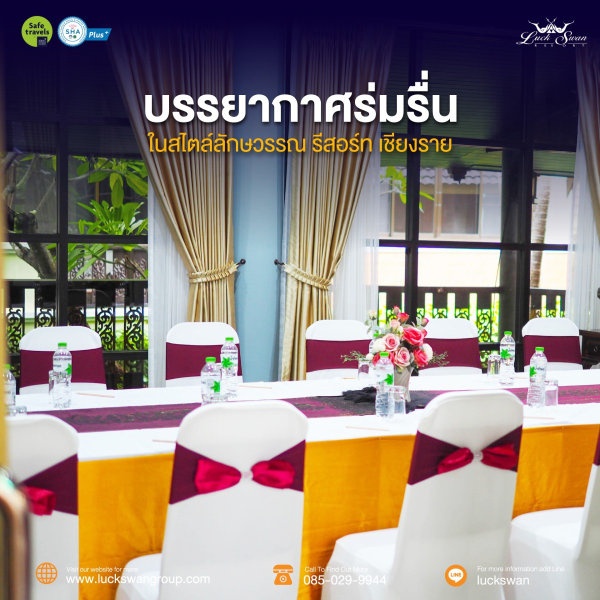 ลักษวรรณ รีสอร์ท เชียงราย ให้บริการจัดงานประชุมและกิจกรรมต่างๆ ท่ามกลางธรรมชาติ ตอบสนองทุกความต้องการ สามารถรองรับกับงานทุกประเภท บริการโดยทีมงานมืออาชีพ พร้อมสิ่งอำนวยความสะดวกครบครัน