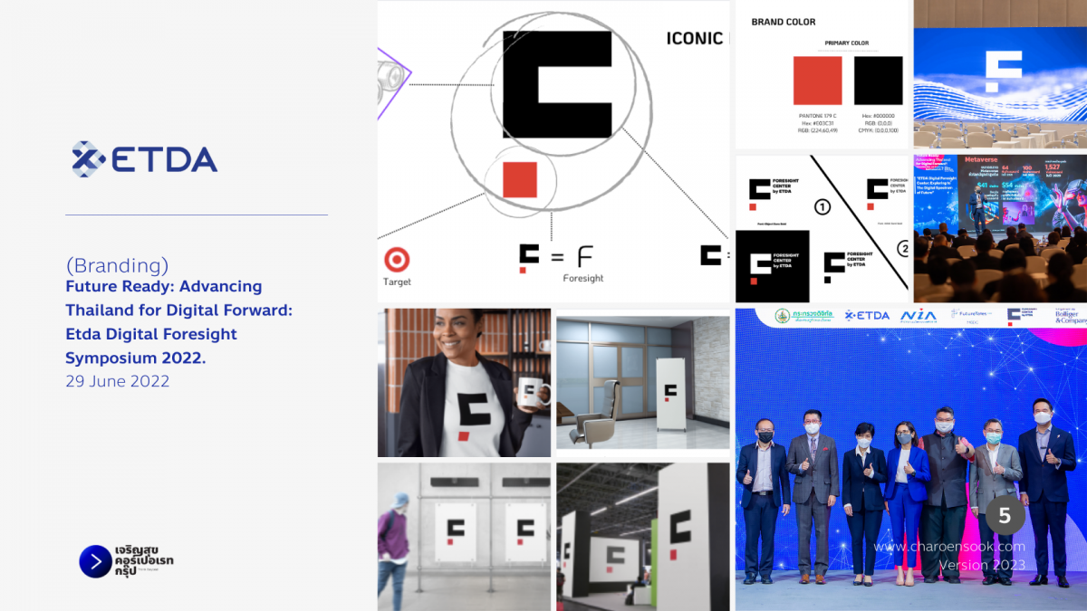 ผลงานบางส่วนของ ขายเพลินเจริญสุข Project: Etda Foresight Center Branding Design