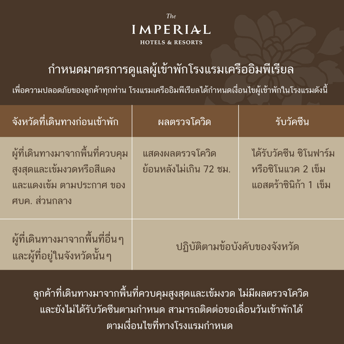 กำหนดมาตรการดูแลผู้เข้าพักโรงแรมเครืออิมพีเรียลทุกโรงแรม
