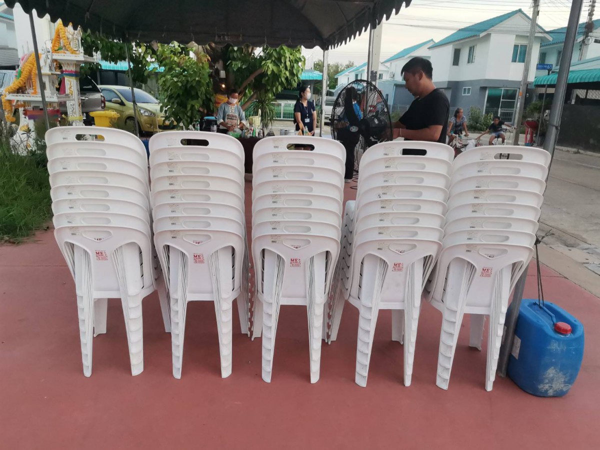 เก้าอี้พลาสติกสีขาวให้เช่า รองรับงานทุกไซส์ S M L XL เพราะทุกงานคืองานใหญ่สำหรับเราเสมอครับ