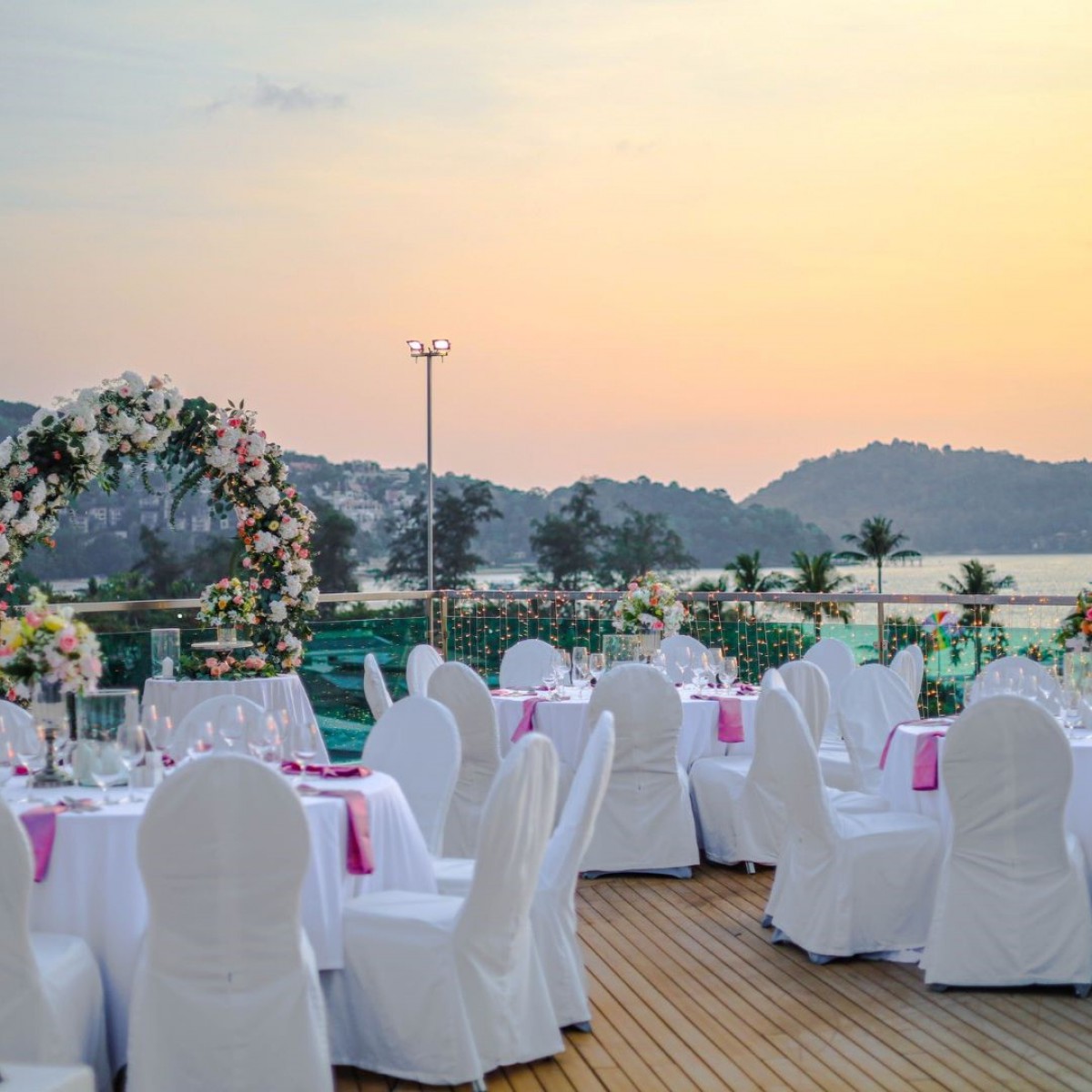 The venue boasts sensational sea/sunset views and glimpses of the Patong skyline making it a truly remarkable space for all types of weddings, private or corporate events.