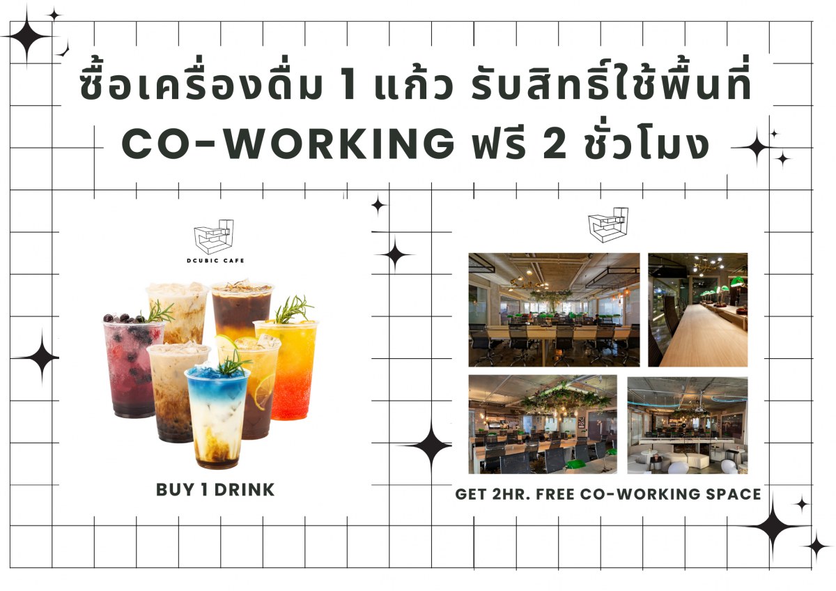 และในขณะนี้เรามีโปรโมชั่นพิเศษที่ทำให้มีค่าของการเข้ามาใช้งานมากยิ่งขึ้น โดยเมื่อคุณซื้อเครื่องดื่มอร่อยๆ จากร้านกาแฟของเรา คุณจะได้รับโอกาสในการเพลิดเพลินในการใช้งาน Co-working Space ฟรี 2 ชั่วโมง มันเป็นการรวมเอาเครื่องดื่มอร่อยๆ และการใช้งานพื้นที่ Co-working Space ที่เต็มไปด้วยพลังงาน เพื่อให้คุณสามารถทำงานได้อย่างมีประสิทธิภาพ