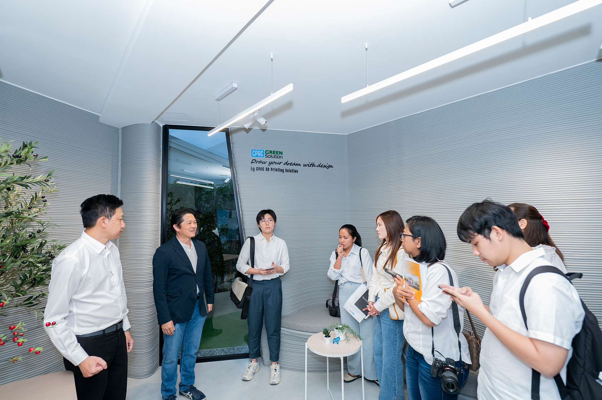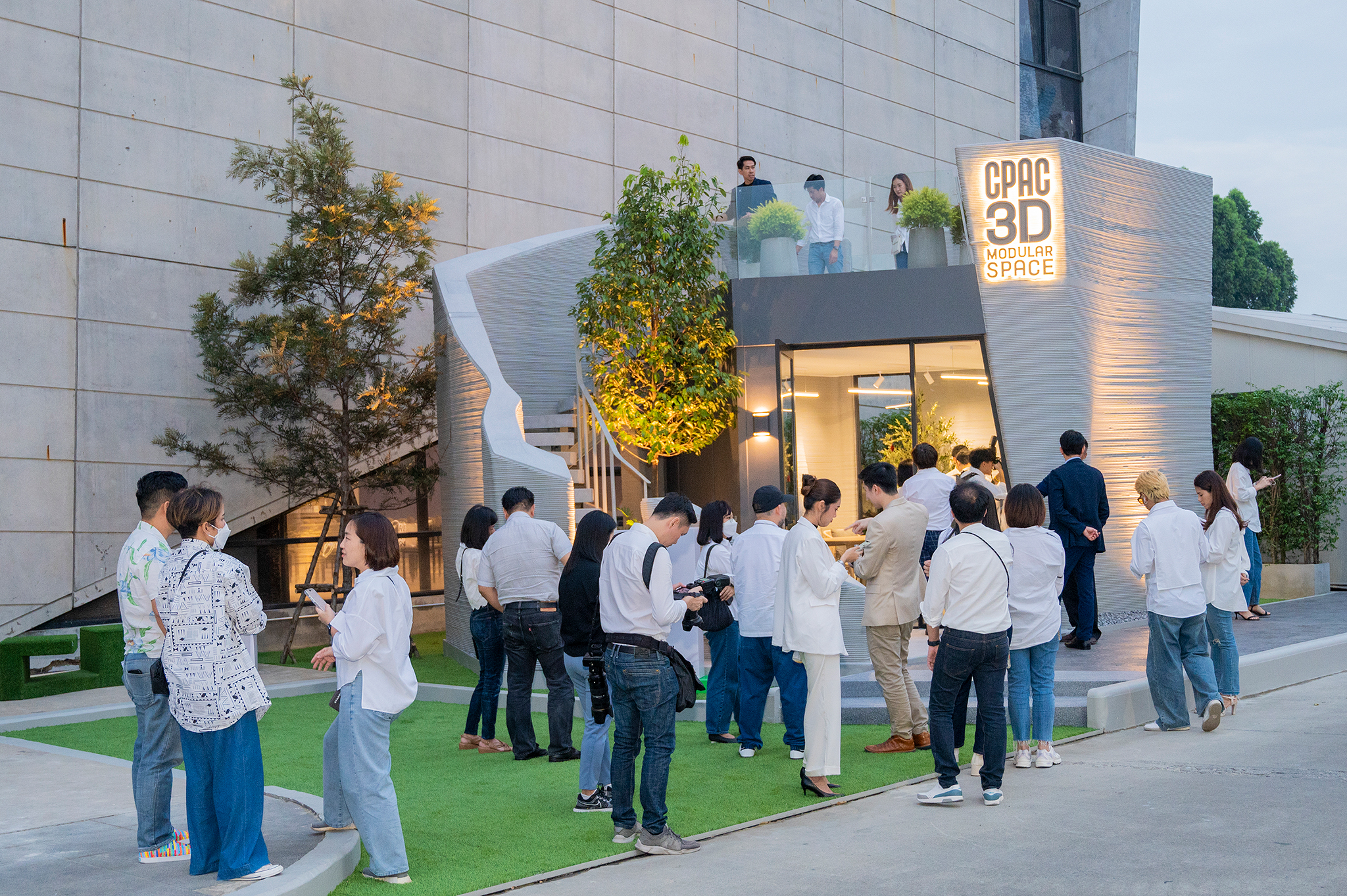 เมื่อวันที่ 29 พฤศจิกายน 2566 ที่ผ่านมา มีงานเปิดตัวอาคาร "CPAC 3D MODULAR SPACE" ที่ SCG HOME Experience โดยอาคารแห่งนี้ เป็นการนำนวัตกรรม CPAC 3D Printing Solution ผสานเทคโนโลยี Prefabricated Prefinished Volumetric Construction (PPVC) มาสร้างสรรค์เป็นอาคาร 2 ชั้น Iconic Landmark แห่งแรกของเมืองไทย ก้าวข้ามทุกขีดจำกัดของงานก่อสร้างและดีไซน์ เป็นการผสมผสานกันระหว่างศาสตร์และศิลป์ได้อย่างลงตัว ด้วยการดึงจุดเด่นของ 2 เทคโนโลยี ได้แก่ CPAC 3D Printing Solution ที่สามารถออกแบบได้อย่างฟรีฟอร์ม ไม่ว่าจะเป็นลวดลายที่สามารถสร้างสรรค์ได้อย่างพลิ้วไหว ลบภาพจำของอาคารซีเมนต์แบบเดิมๆ ที่ส่วนใหญ่เป็นเหลี่ยมเป็นมุม ยกระดับงานสถาปัตยกรรมให้เป็นไปได้ทุกความต้องการ และ Prefabricated Prefinished Volumetric Construction (PPVC) เทคโนโลยีการผลิตองค์ประกอบหลักของอาคารด้วยการพิมพ์ขึ้นรูปคอนกรีตแบบฟรีฟอร์มจากภายในโรงงาน (Offsite) และนำมาประกอบและติดตั้งที่หน้างาน (Onsite) ได้อย่างรวดเร็ว ตรงคอนเซ็ปต์ "ครบทุกความพร้อม" ประหยัดเวลา ลดเศษวัสดุสิ้นเปลืองเหลือทิ้ง และยังช่วยลดมลภาวะ