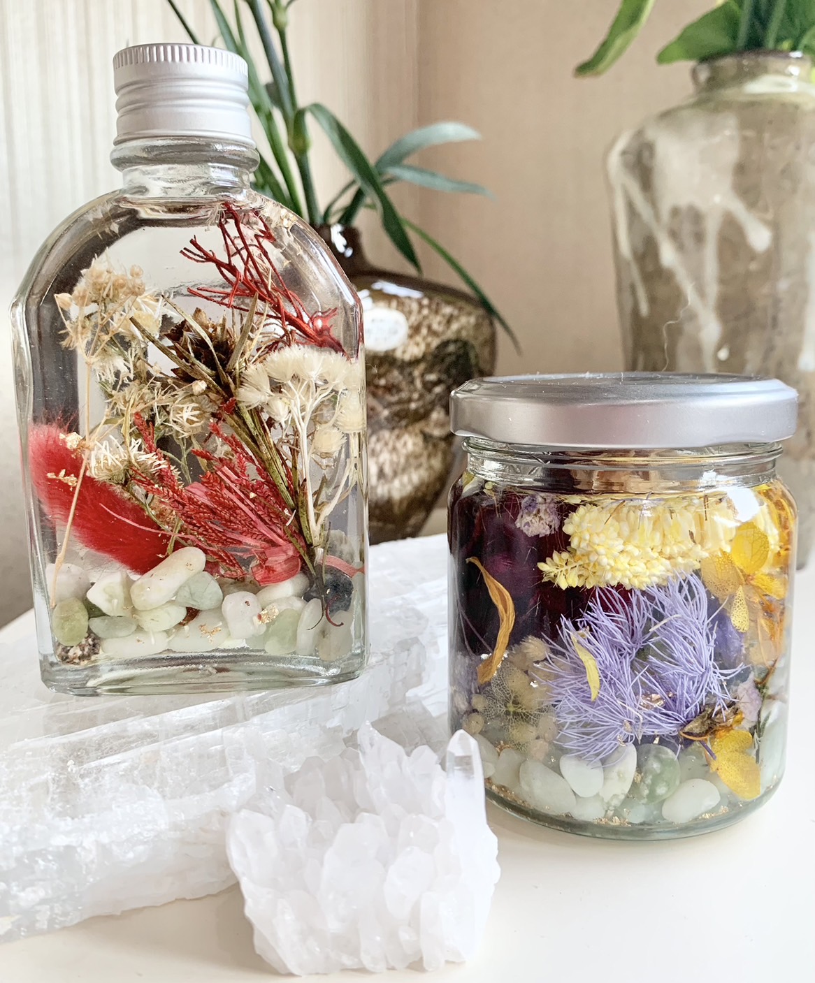 "Herbarium จัดดอกไม้แห้งในขวดแก้วรียูส"