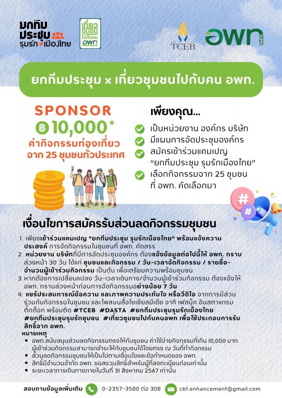 SPONSOR 10,000 บาท ค่ากิจกรรมท่องเที่ยว จาก 25 ชุมชนทั่วประเทศ
