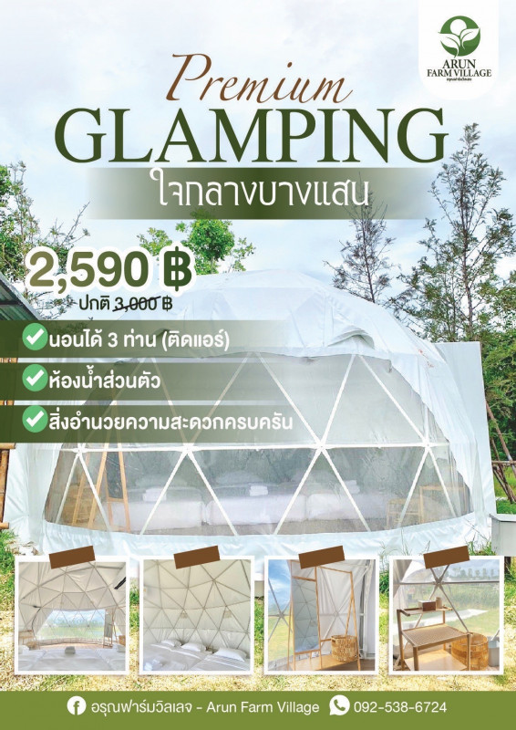 ไม่เพียงเเต่กิจกรรมเเน่น ยังมี Arunfarm Camping เต็นท์ติดเเอร์ที่พักที่มีสิ่งอำนวยความสะดวกครบครัน เเละลานกางเต็นท์อีกด้วย อิ่มท้องด้วยบริการชุดชาบู บาบีคิว หมูพอร์คชอป รวมไปถึงตระกร้าขนมสุดคุ้ม อุปกรณ์ครบครัน เเละไม่เพียงเท่านี้ ยังมีบริการอาหารเเละเครื่องดื่มในฟาร์มอีกด้วย เเละด้วยพื้นที่กว้างขวางสามารถรองรับผู้เข้าชมได้เป็นจำนวนมาก ทั้งครอบครัว เพื่อนฝูง หมู่คณะ รวมไปถึงทีมงานจำนวนมาก จากบริษัท หน่วยงาน องค์กร โรงเรียน ไม่ว่าจะมามากมายขนาดไหน ทาง อรุณฟาร์ม สามารถรองรับทุกท่านได้เเน่นอน พร้อมรับประสบการณ์ใหม่ ๆ ที่ อรุณฟาร์มวิลเลจ