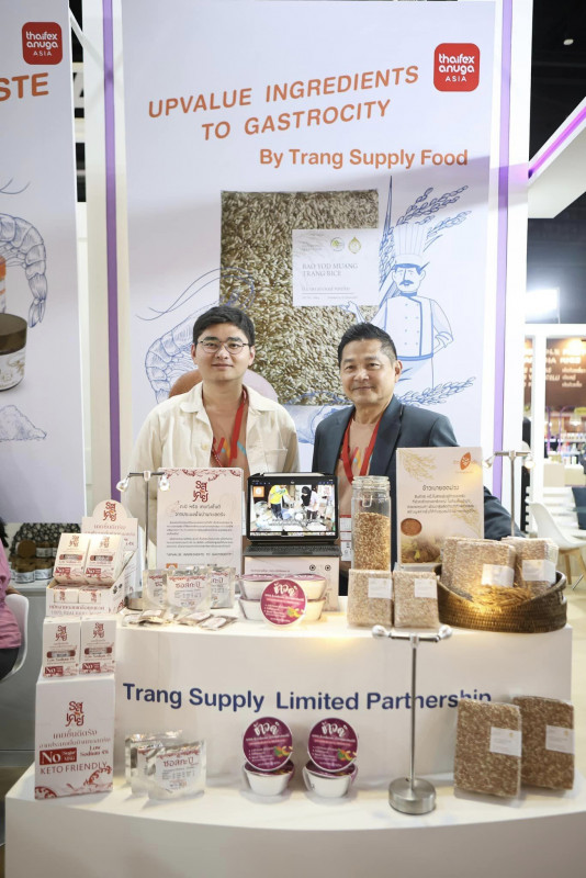 จังหวัดตรังจัดใหญ่นำสินค้าเด่นที่มีศักยภาพ สินค้าสิ่งบ่งชี้ทางภูมิศาสตร์ (GI) สินค้าอัตลักษณ์ สินค้านวัตกรรม รวมไว้ที่งาน “Thaifex Anuga Asia 2024” ณ ศูนย์แสดงสินค้าและการประชุมอิมแพ็คเมืองทองธานี โดยมีสินค้ามาจัดแสดง อาทิ พริกไทยตรังจาก Bansuan Heritage และ LADA พริกไทย "พันธุ์ปะเหลียน" รสชาติเผ็ดร้อน กลิ่นหอมเป็นเอกลักษณ์ วัตถุดิบสูตรลับผลักดันครัวไทยสู่ครัวโลก, ข้าวพื้นเมืองกลิ่นหอมอ่อนๆ นิ่มและนุ่ม หนุบหนับ มีคุณค่าทางโภชนาการ โปรตีนสูง คาร์โบไฮเดรตต่ำ มีสารต้านอนุมูลอิสระ จาก Kachong hills, และวิสาหกิจจังหวัดตรัง และสินค้าที่จากจังหวัดตรังคัดสรรมาจากผู้ประกอบการโดยตรง ไม่ว่าจะเป็น ลูกชิ้นพริกไทยตรัง จาก Sudtalay กะปิกุ้งแท้สุดพรีเมี่ยมจาก Kapikung Koh Libong Janee อาหารทะเลแปรรูป Gold, Big Can, Kisu ผงโรยข้าวแซลม่อน น้ำพริกแซลม่อนจาก Yanu เครื่องแกงสำเร็จรูป Baan Suda ใช้เป็นเครื่องปรุงกับเมนูอะไรก็ลงตัวไปหมด และยังมีเครื่องดื่มที่เกิดจากภูมิปัญญาพื้นบ้านจาก Tabtieng Spirits