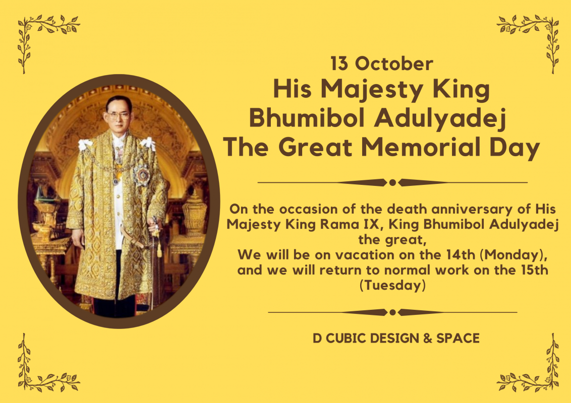 วันที่ 14 ตุลาคม พ.ศ. 2567 D Cubic Design & Space หยุดทำการ 1 วัน