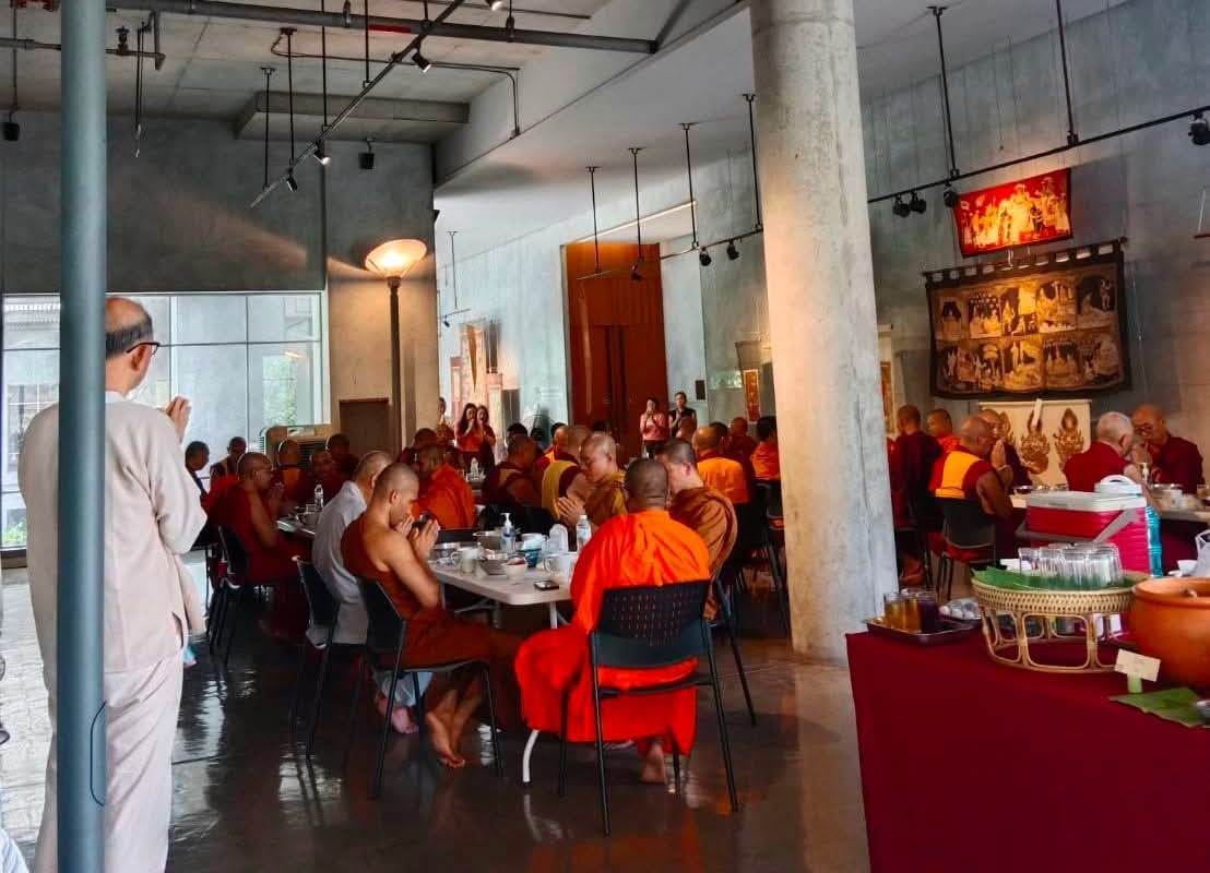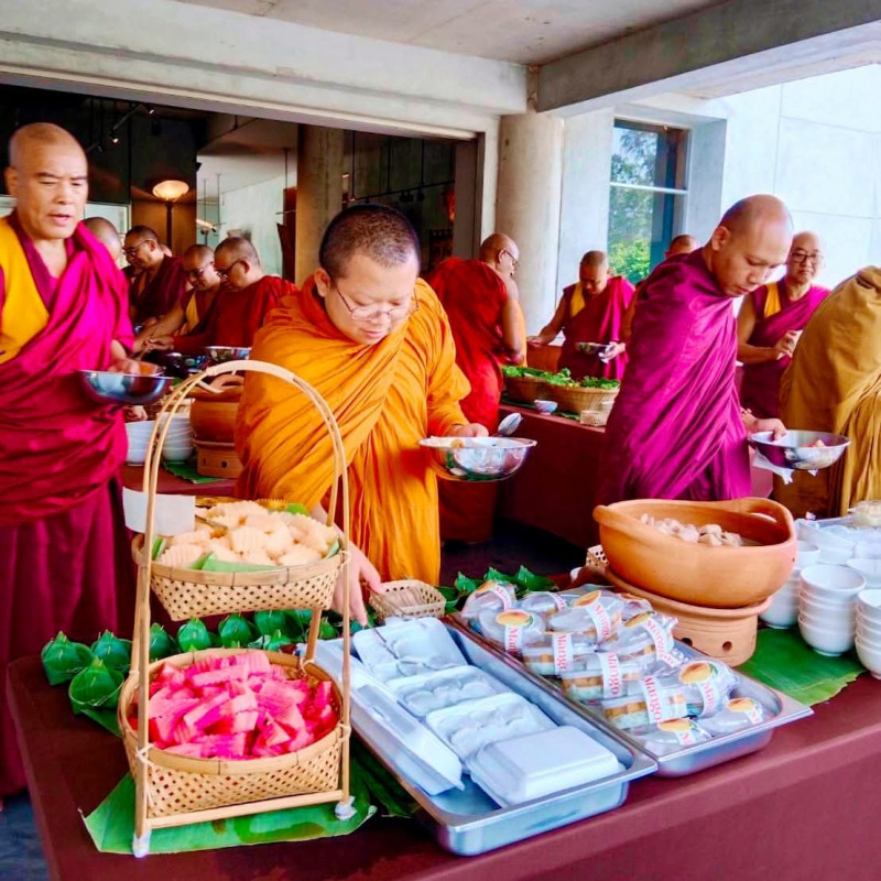 ประเคนทีละสำรับแด่พระสงฆ์ หลังจากนั้นพระสงฆ์ตักสำรับเอง