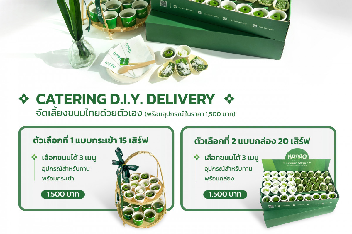 หยกสดยกกระเช้าเสิร์ฟขนมไทยคลายร้อน ด้วยเซ็ต Catering DIY พร้อมน้ำใบเตยสดชื่นในราคา 2,000 บาท