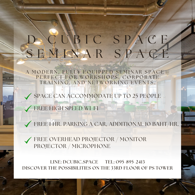 Host your workshops, corporate training, and networking events in our modern and fully equipped seminar space at D Cubic Space!