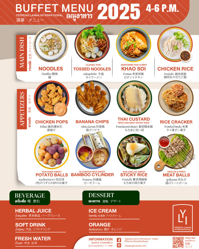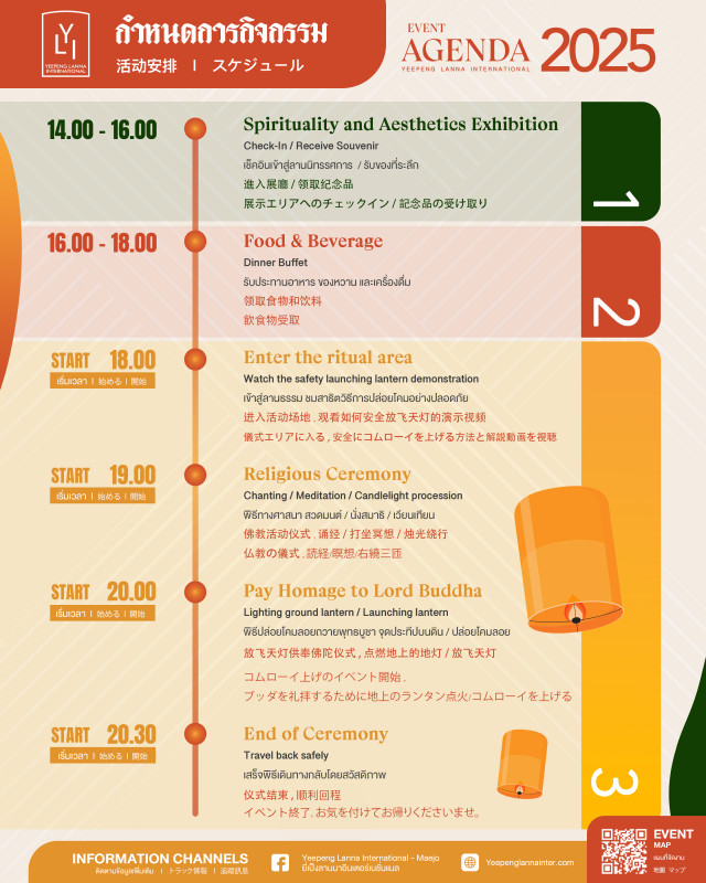 Experience the enchanting Yee Peng Lanna International 2025 in Chiang Mai, where talented students showcase Lanna and hill tribe heritage. Enjoy authentic snacks, desserts, and drinks, and take part in Buddhist rituals, meditation, and a lighting ceremony. Moderator: English, Chinese, and Japanese