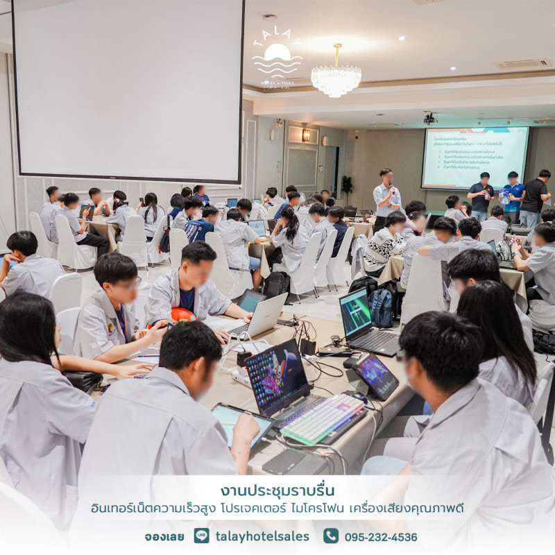 ทางโรงแรมมีแพคเกจจัดประชุมพร้อม Team Building หลากหลายสนใจติดต่อสอบถามได้ที่หมายเลข 095-232-4536 หรือ Line @talayhotelsales ค่ะ